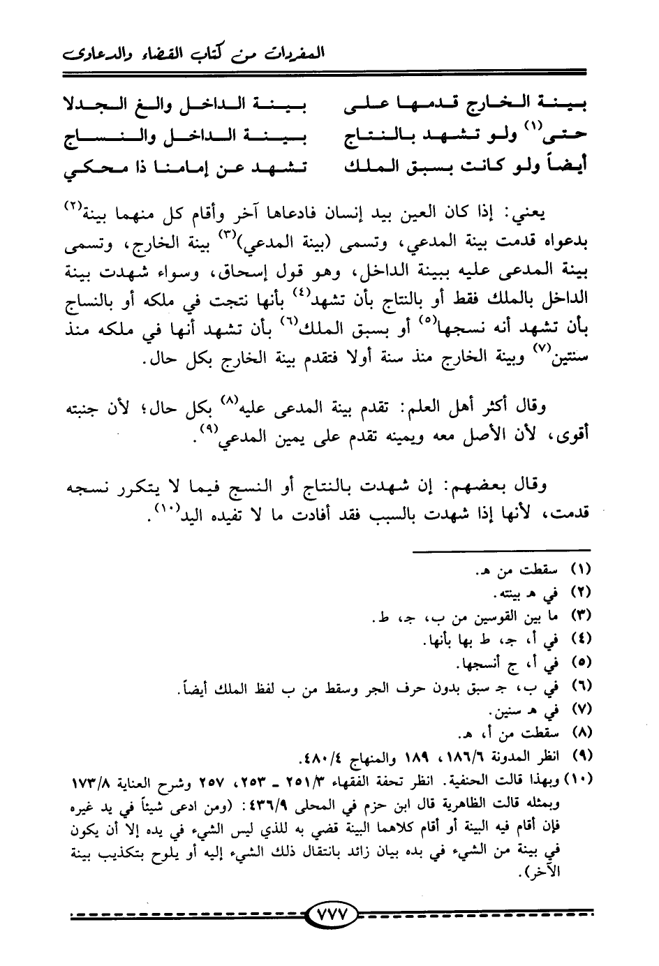 بينة الخارج قدمها على ... بينة الداخل والغ الجدلا