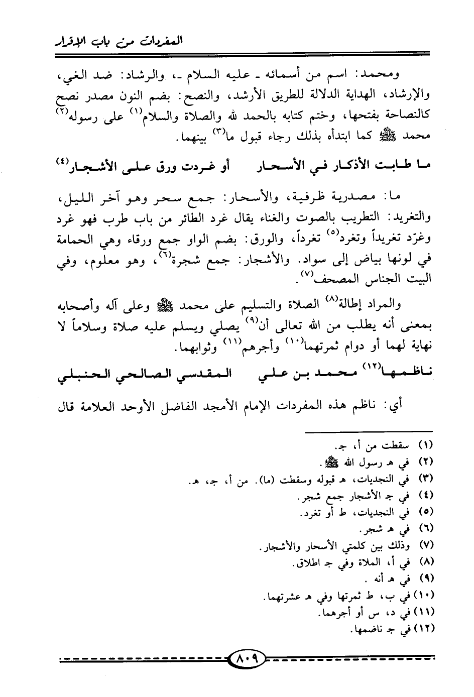 ناظمها (¬12) محمد بن علي ... المقدسي الصالحي الحنبلي