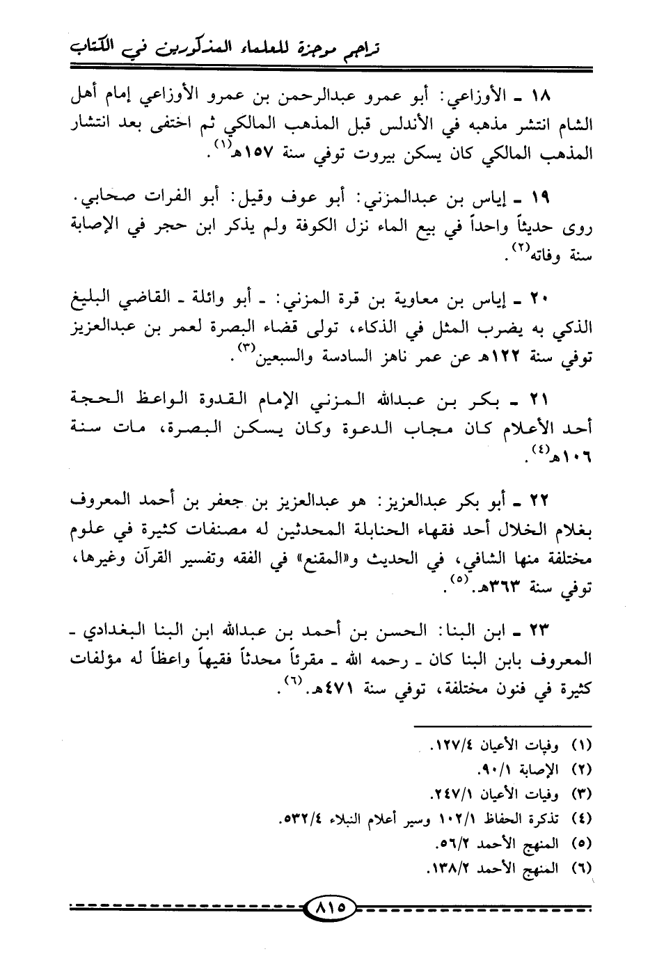 22 - أبو بكر عبد العزيز: هو عبد العزيز بن جعفر بن أحمد المعروف بغلام الخلال أحد فقهاء الحنابلة المحدثين له مصنفات كثيرة في علوم مختلفة منها الشافي، في الحديث و"المقنع" في الفقه وتفسير القرآن وغيرها، توفي سنة 363هـ. (¬5).