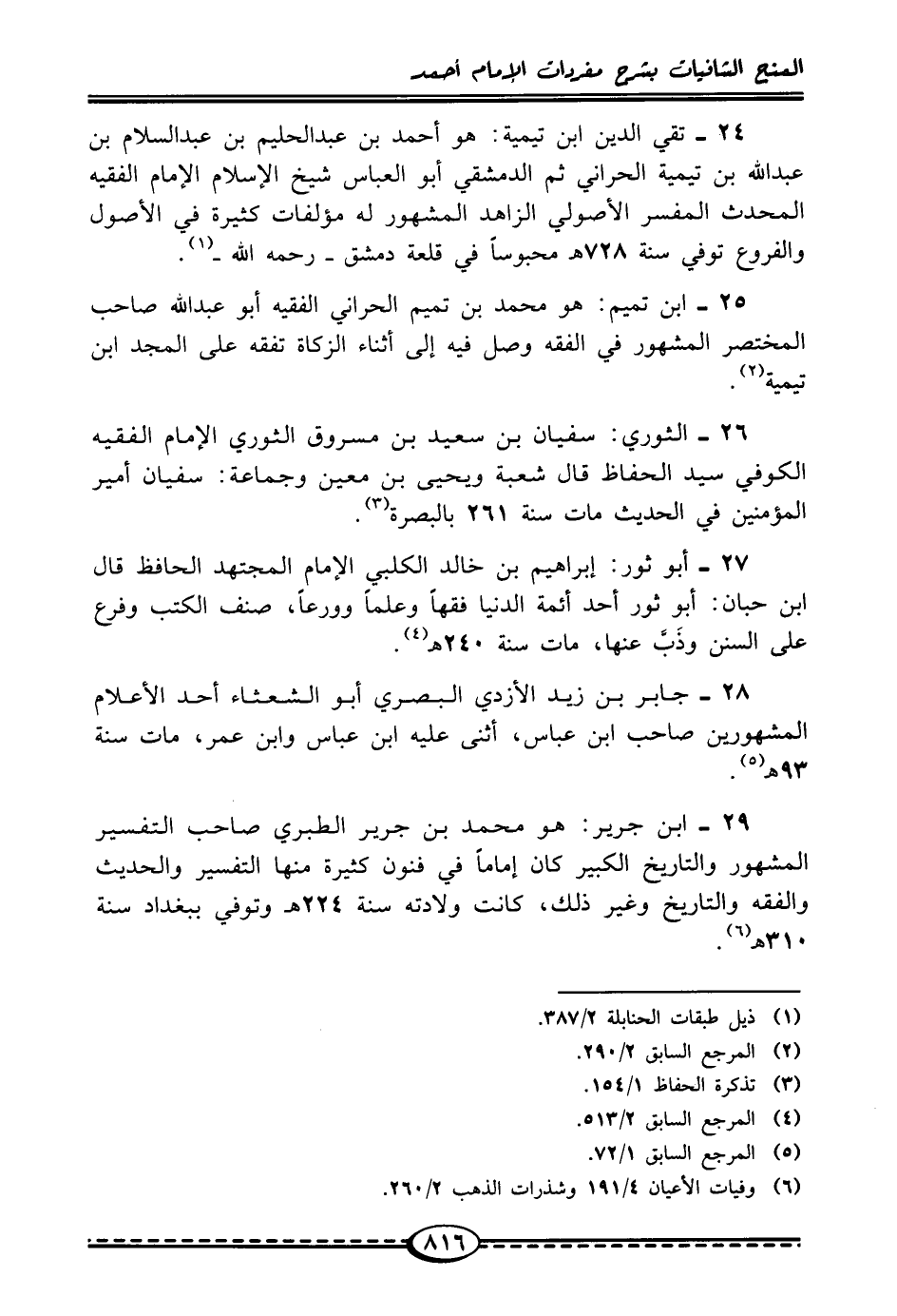 25 - ابن تميم: هو محمَّد بن تميم الحراني الفقيه أبو عبد الله صاحب المختصر المشهور في الفقه وصل فيه إلى أثناء الزكاة تفقه على المجد ابن تيمية (¬2).
