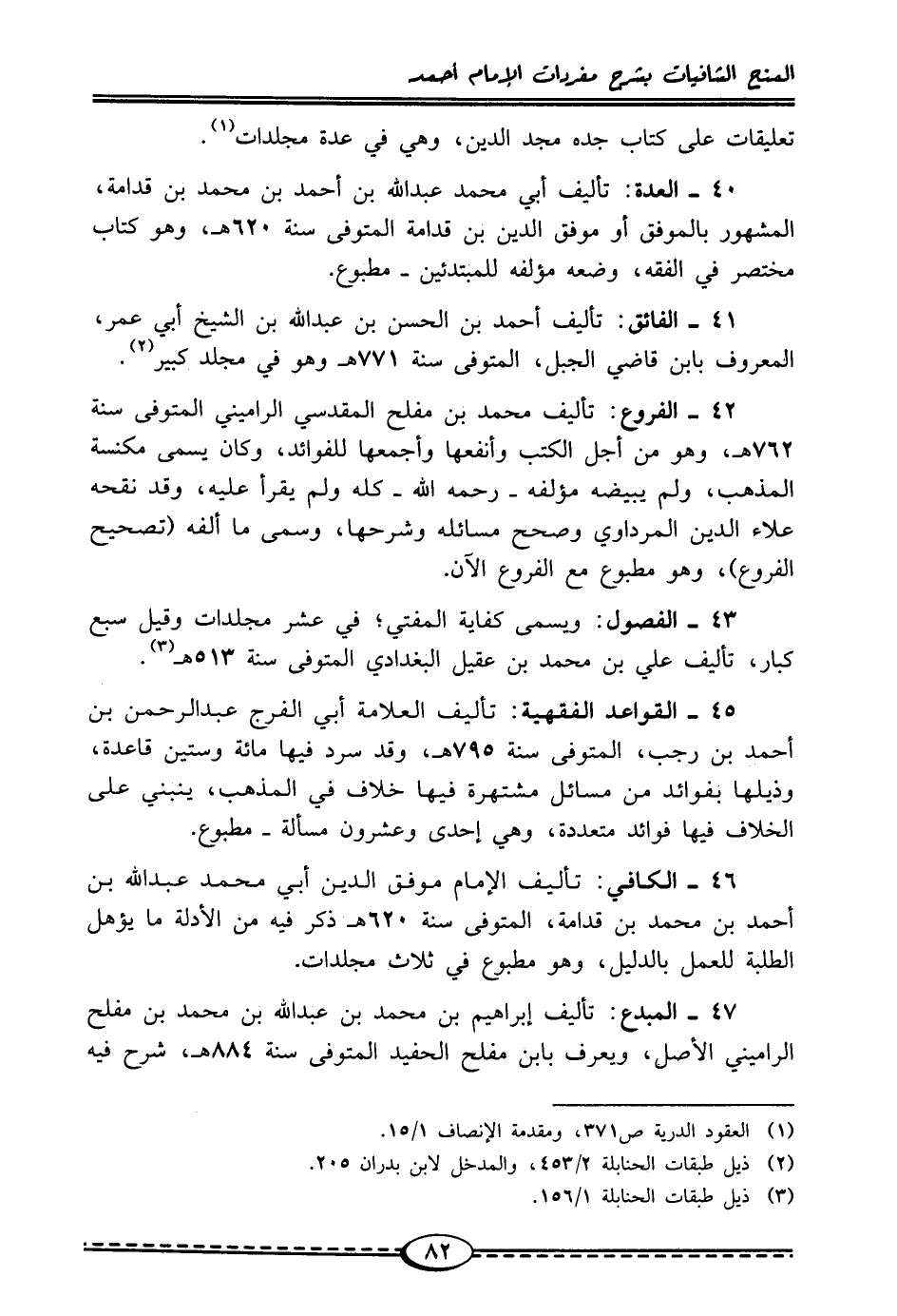 47 - المبدع: تأليف إبراهيم بن محمَّد بن عبد الله بن محمَّد بن مفلح الراميني الأصل، ويعرف بابن مفلح الحفيد المتوفى سنة 884هـ، شرح فيه