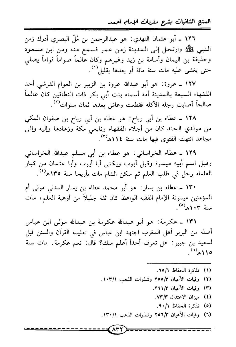 (¬6) وفيات الأعيان 3/ 256 وشذرات الذهب 1/ 130.