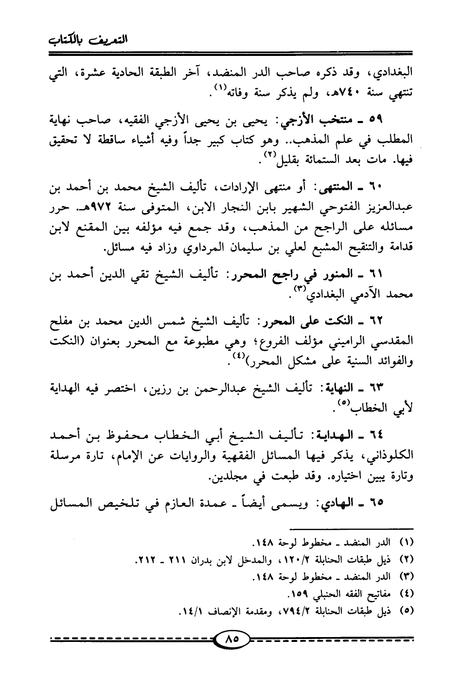 63 - النهاية: تأليف الشيخ عبد الرحمن بن رزين، اختصر فيه الهداية لأبي الخطاب (¬5).