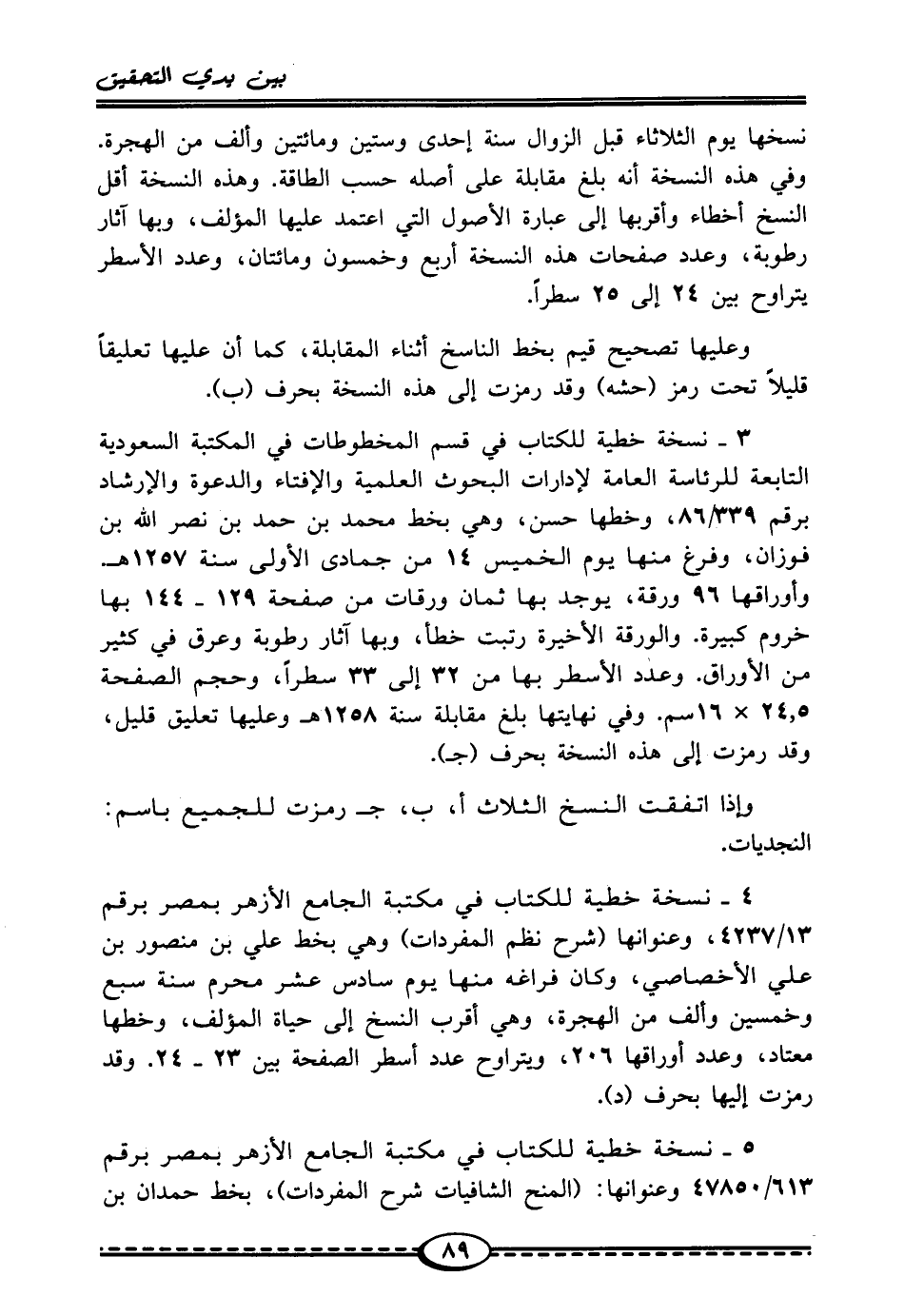 وإذا اتفقت النسخ الثلاث أ، ب، جـ رمزت للجميع باسم: النجديات.