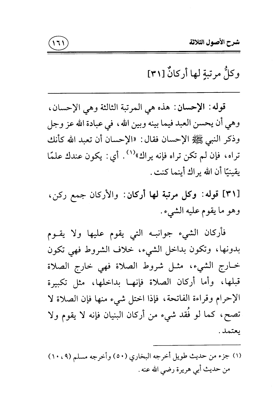 [31] قوله: وكل مرتبة لها أركان: والأركان جمع ركن، وهو ما يقوم عليه الشيء.