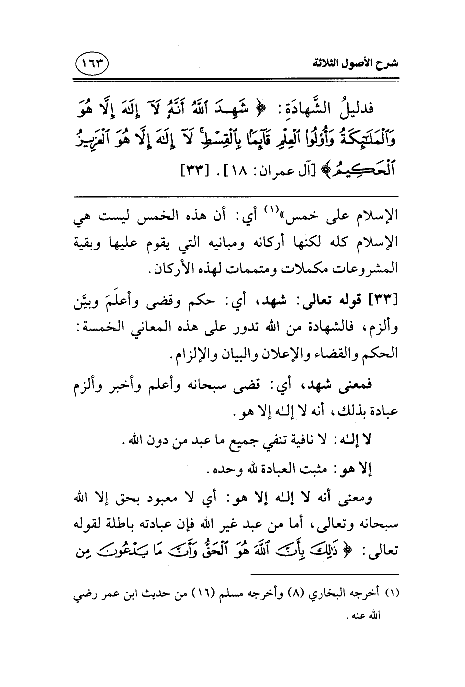 فدليل الشهادة: {شَهِدَ اللَّهُ أَنَّهُ لَا إِلَهَ إِلَّا هُوَ وَالْمَلَائِكَةُ وَأُولُو الْعِلْمِ قَائِمًا بِالْقِسْطِ لَا إِلَهَ إِلَّا هُوَ الْعَزِيزُ الْحَكِيمُ} [آل عمران: 18] [33] .