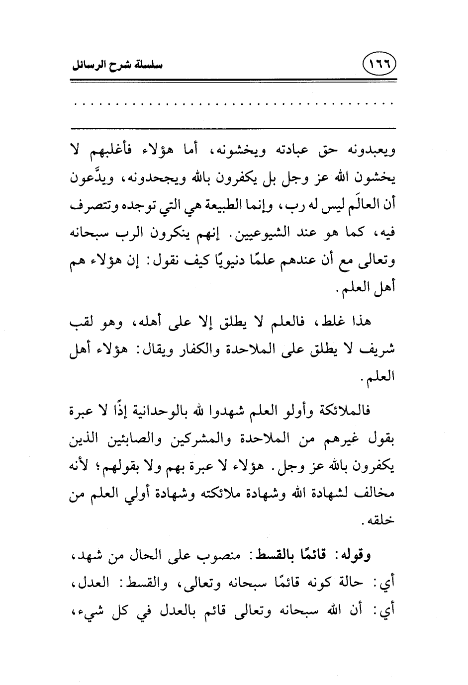 فالملائكة وأولو العلم شهدوا لله بالوحدانية، إذًا لا عبرة بقول غيرهم من الملاحدة والمشركين والصابئين الذين يكفرون بالله عز وجل، هؤلاء لا عبرة بهم ولا بقولهم؛ لأنه مخالف لشهادة الله وشهادة ملائكته وشهادة أولي العلم من خلقه.
