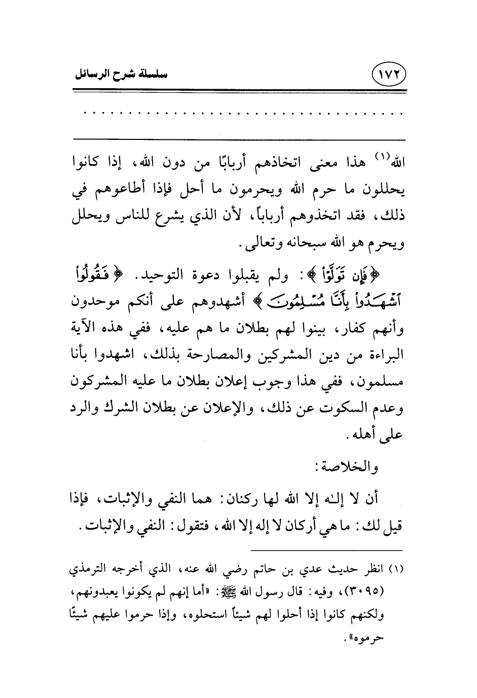 الله هذا معنى اتخاذهم أربابًا من دون الله، إذا كانوا يحللون ما حرم الله ويحرمون ما أحل، فإذا أطاعوهم في ذلك، فقد اتخذوهم أربابا؛ لأن الذي يشرع للناس ويحلل ويحرم هو الله سبحانه وتعالى.