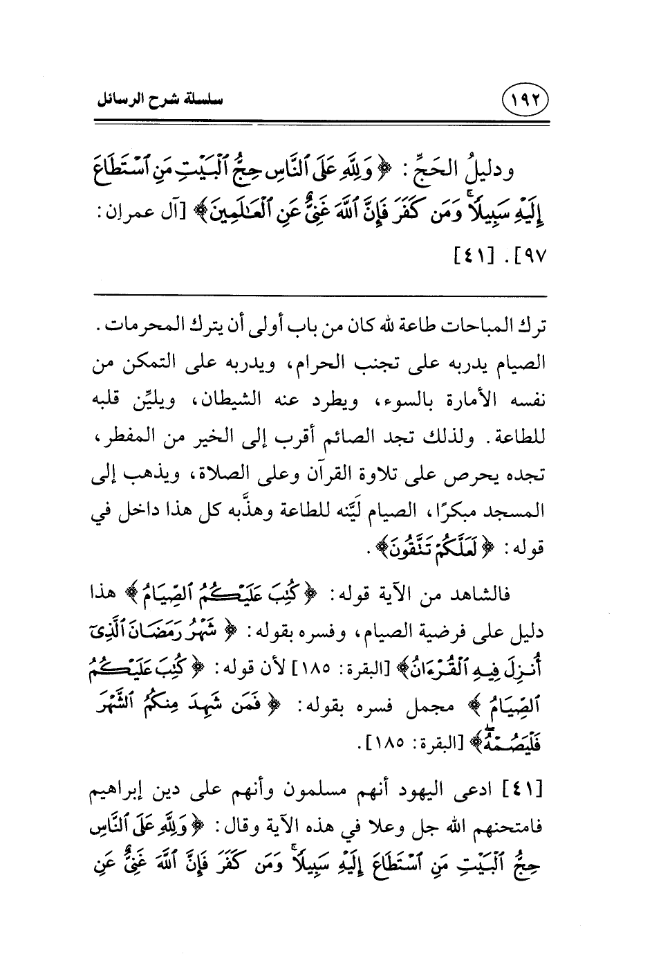[41] ادعى اليهود أنهم مسلمون، وأنهم على دين إبراهيم، فامتحنهم الله جل وعلا في هذه الآية وقال: {وَلِلَّهِ عَلَى النَّاسِ حِجُّ الْبَيْتِ مَنِ اسْتَطَاعَ إِلَيْهِ سَبِيلًا وَمَنْ كَفَرَ فَإِنَّ اللَّهَ غَنِيٌّ عَنِ الْعَالَمِينَ}
