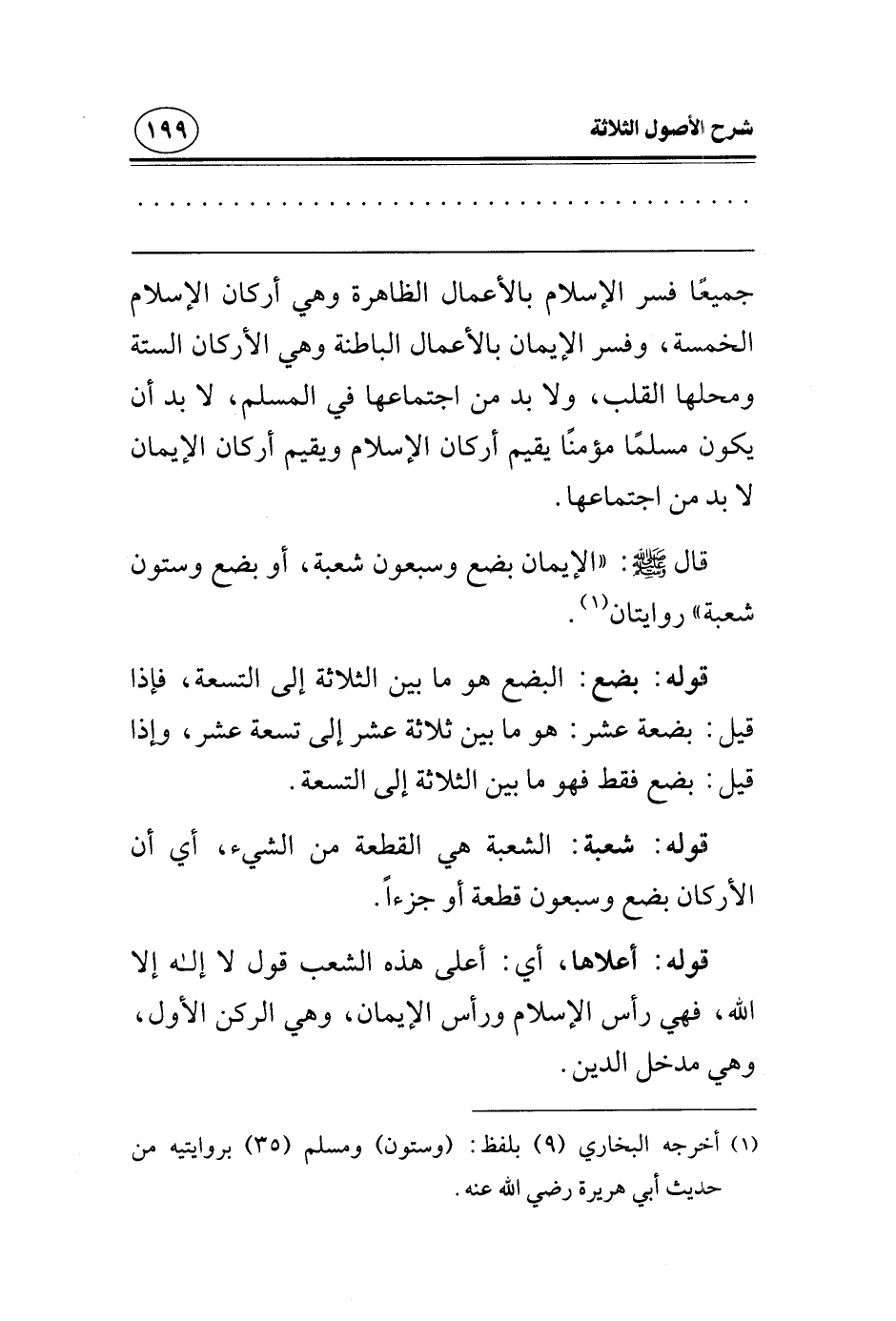 قال صلى الله عليه وسلم: «الإيمان بضع وسبعون شعبة، أو بضع وستون شعبة» روايتان.