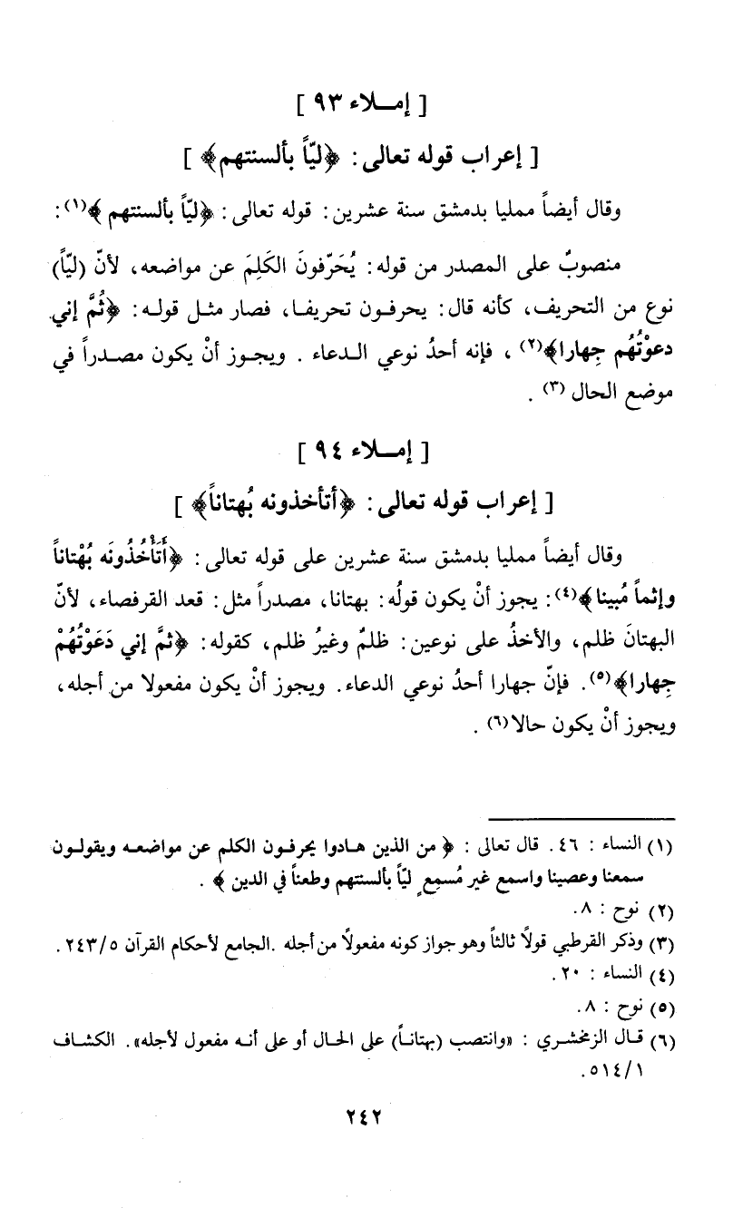 وقال أيضاً مملياً بدمشق سنة عشرين: قوله تعالىك {ليّا بألسنتهم} (¬1):