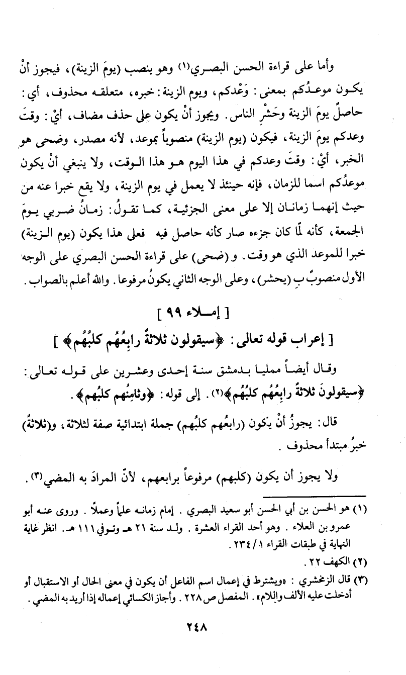 (¬1) هو الحسن بن أبي الحسن أبو سعيد البصري. إمام زمانه علماً وعملاً. وروى عنه أبو عمرو بن العلاء. وهو أحد القراء العشرة. ولد سنة 21 هـ وتوفي 111 هـ. انظر غاية النهاية في طبقات القراء 1/ 234.