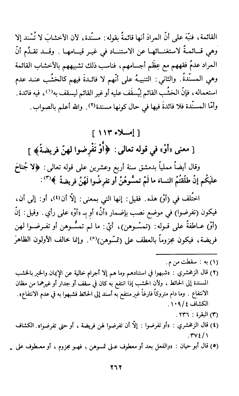 (¬4) قال الزمخشري: "أو تفرضوا: إلا أن تفرضوا لهن فريضة، أو حتى تفرضوا". الكشاف 1/ 374.