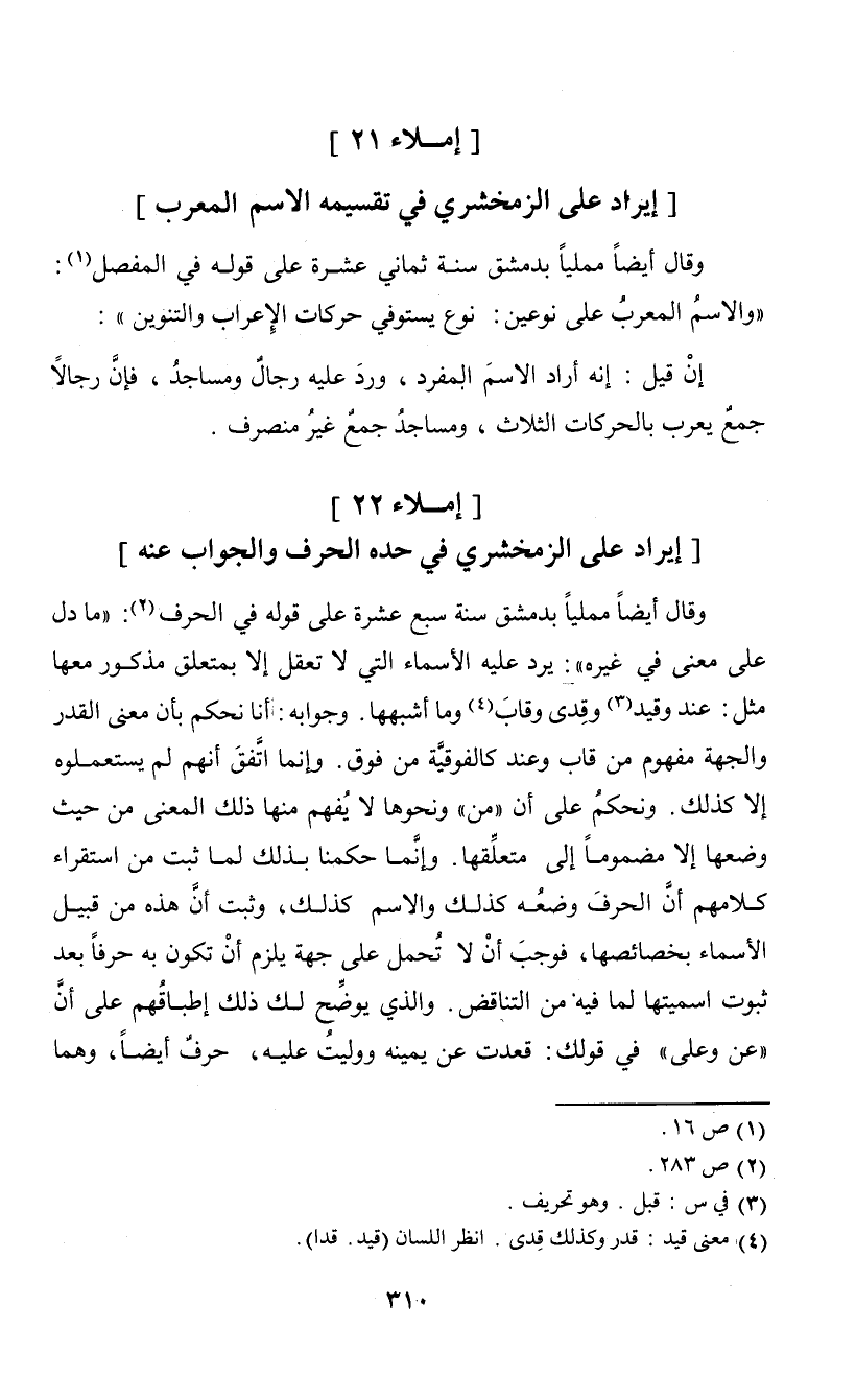 [إيراد على الزمخشري في تقسيمه الاسم المعرب]
