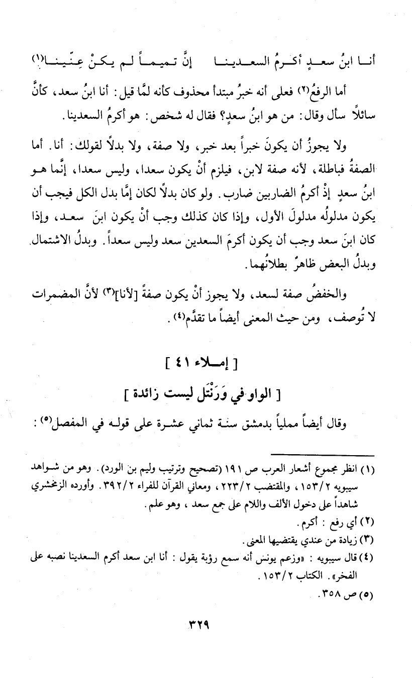 (¬4) قال سيبويه: "وزعم يونس أنه سمع رؤية يقول: أنا ابن سعد أكرم السعدينا نصبه على الفخر". الكتاب 2/ 153.