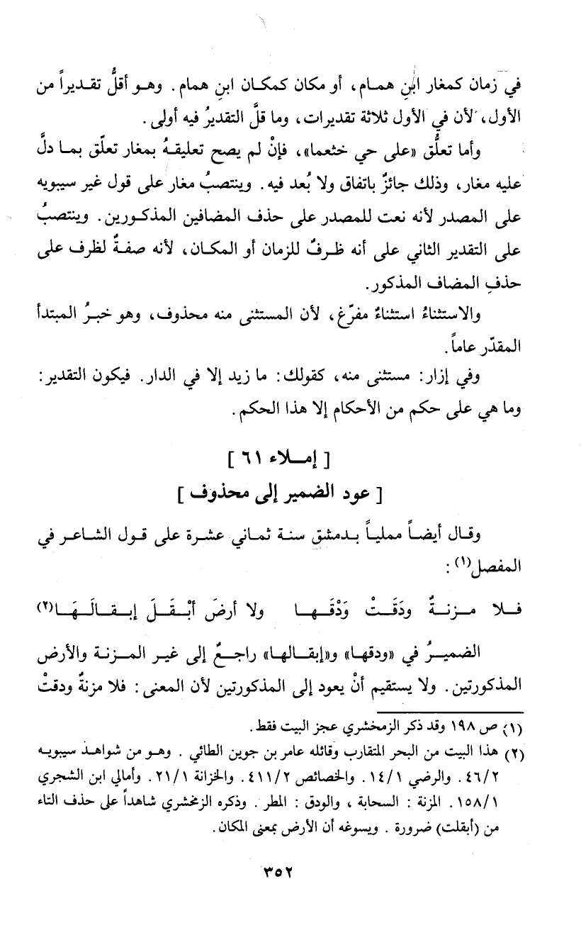 وقال أيضاً مملياً بدمشق سنة ثماني عشرة على قول الشاعر في المفصل (¬1):