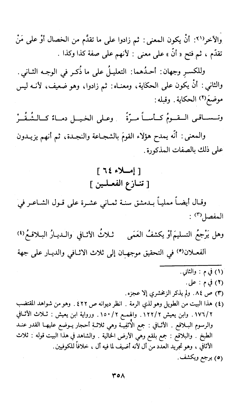 وقال أيضاً مملياً بدمشق سنة ثماني عشرة على قول الشاعر في المفصل (¬3):