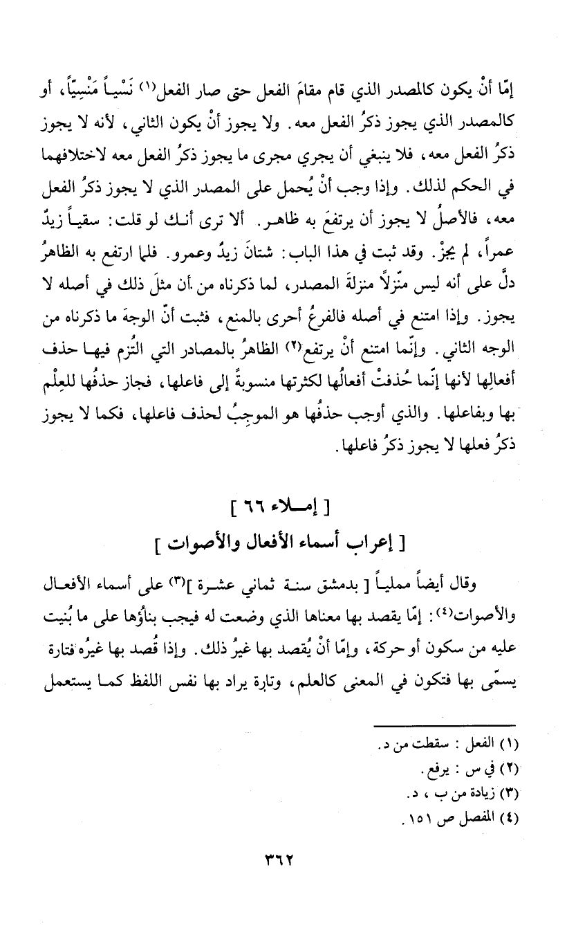 وقال أيضاً مملياً [بدمشق سنة ثماني عشرة] (¬3) على أسماء الأفعال والأصوات (¬4): إما يقصد بها معناها الذي وضعت له فيجب بناؤها على ما بنيت عليه من سكون أو حركة، وإما أن يقصد بها غير ذلك. وإذا قصد بها غيره فتارة يسمى بها فتكون في المعنى كالعلم، وتارة يراد بها نفس اللفظ كما يستعمل