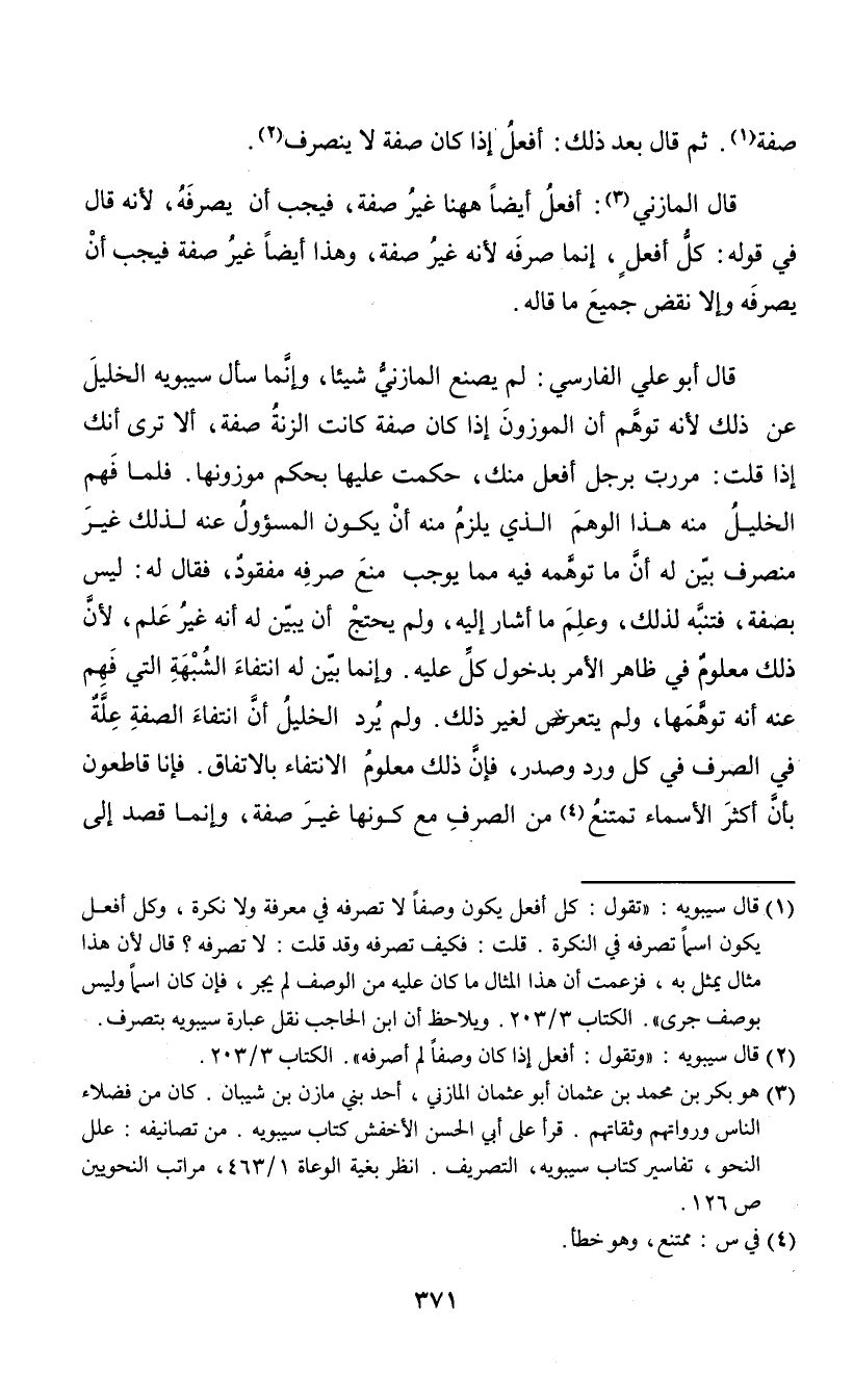(¬3) هو بكر بن محمد بن عثمان أبو عثمان المازني، أحد بني مازن بن شيبان. كان من فضلاء الناس ورواتهم وثقاتهم. قرأ علي أبي الحسن الأخفش كتاب سيبويه. من تصانيفه: علل النحو، تفاسير كتاب سيبويه، التصريف. انظر بغية الوعاة 1/ 463، مراتب النحويين ص 126.