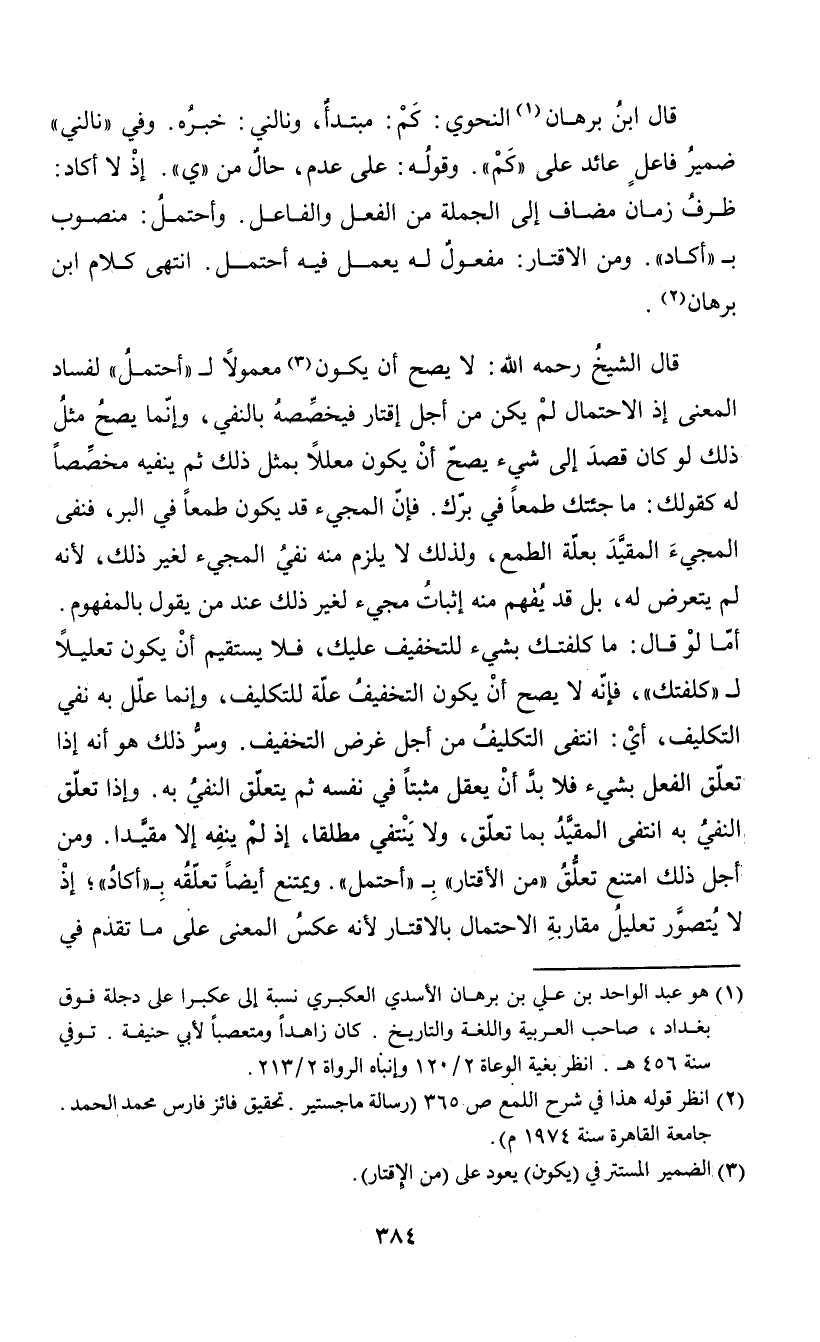 (¬2) انظر قوله هذا في شرح الدمع ص 365 (رسالة ماجستير. تحقيق فائز فارس محمد الحمد. جامعة القاهرة سنة 1974م).