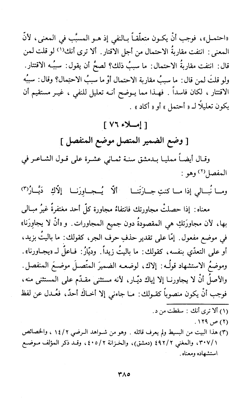 (¬3) هذا البيت من البسيط ولم يعرف قائله. وهو من شواهد الرضي 2/ 14، والخصائص 1/ 307، والمغني 2/ 492 (دمشق)، والخزانة 2/ 405، وقد ذكر المؤلف موضع استشهاده ومعناه.