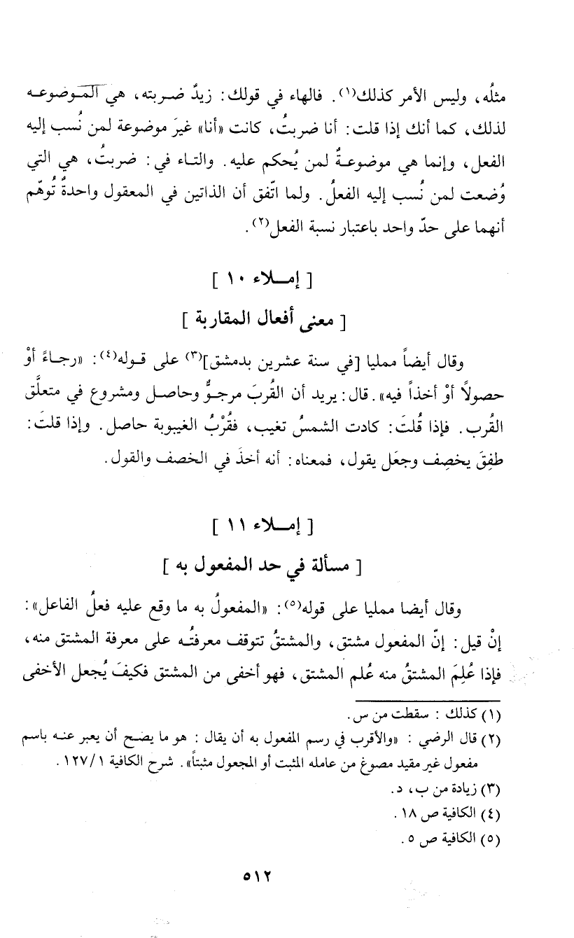 (¬2) قال الرضي: "والأقرب في رسم المفعول به أن يقال: هو ما يضح أن يعبر عنه باسم مفعول غير مقيد مصوغ من عامله المثبت أو المجعول مثبتاً". شرح الكافية 1/ 127.