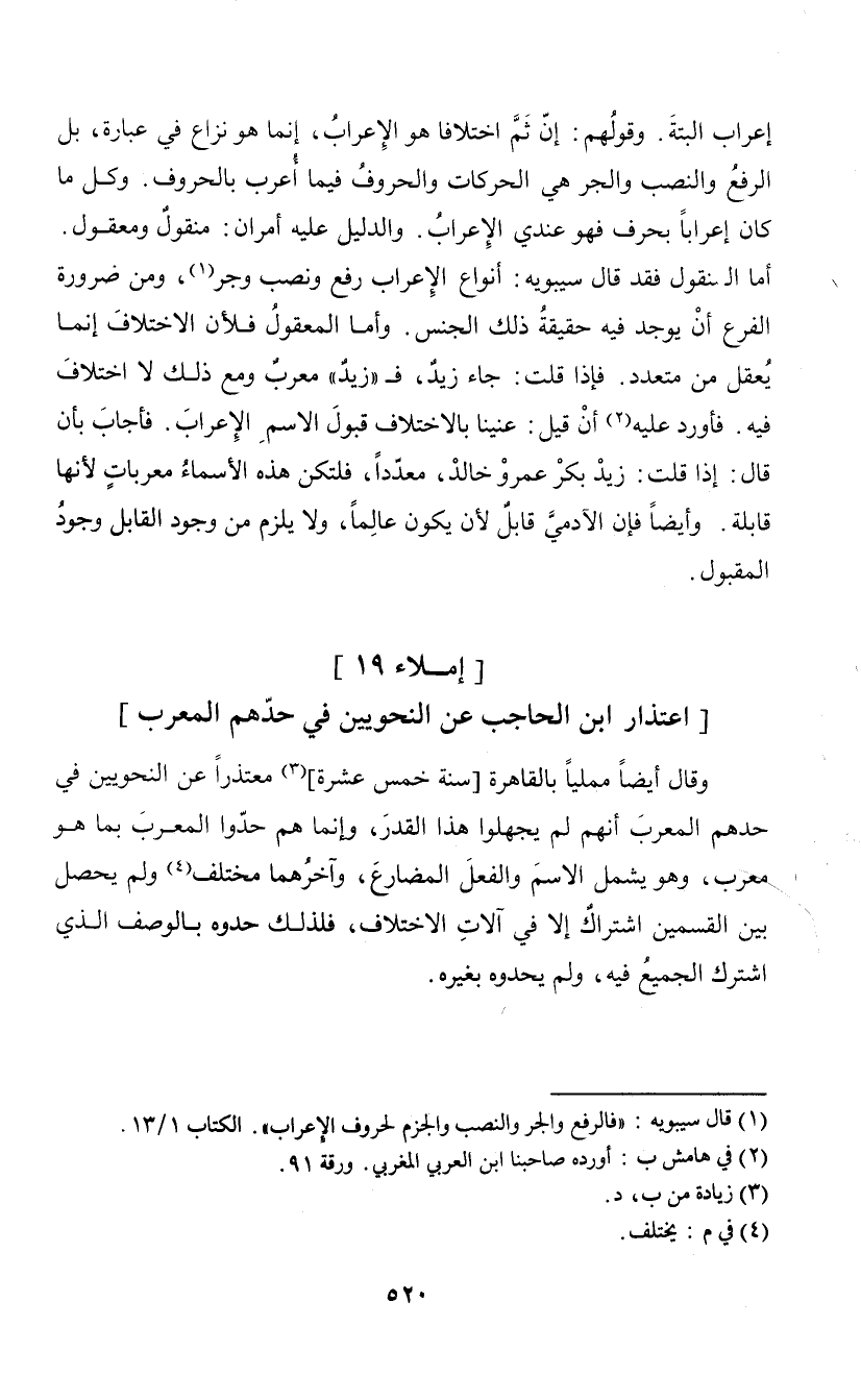 [اعتذار ابن الحاجب عن النحويين في حدهم المعرب]