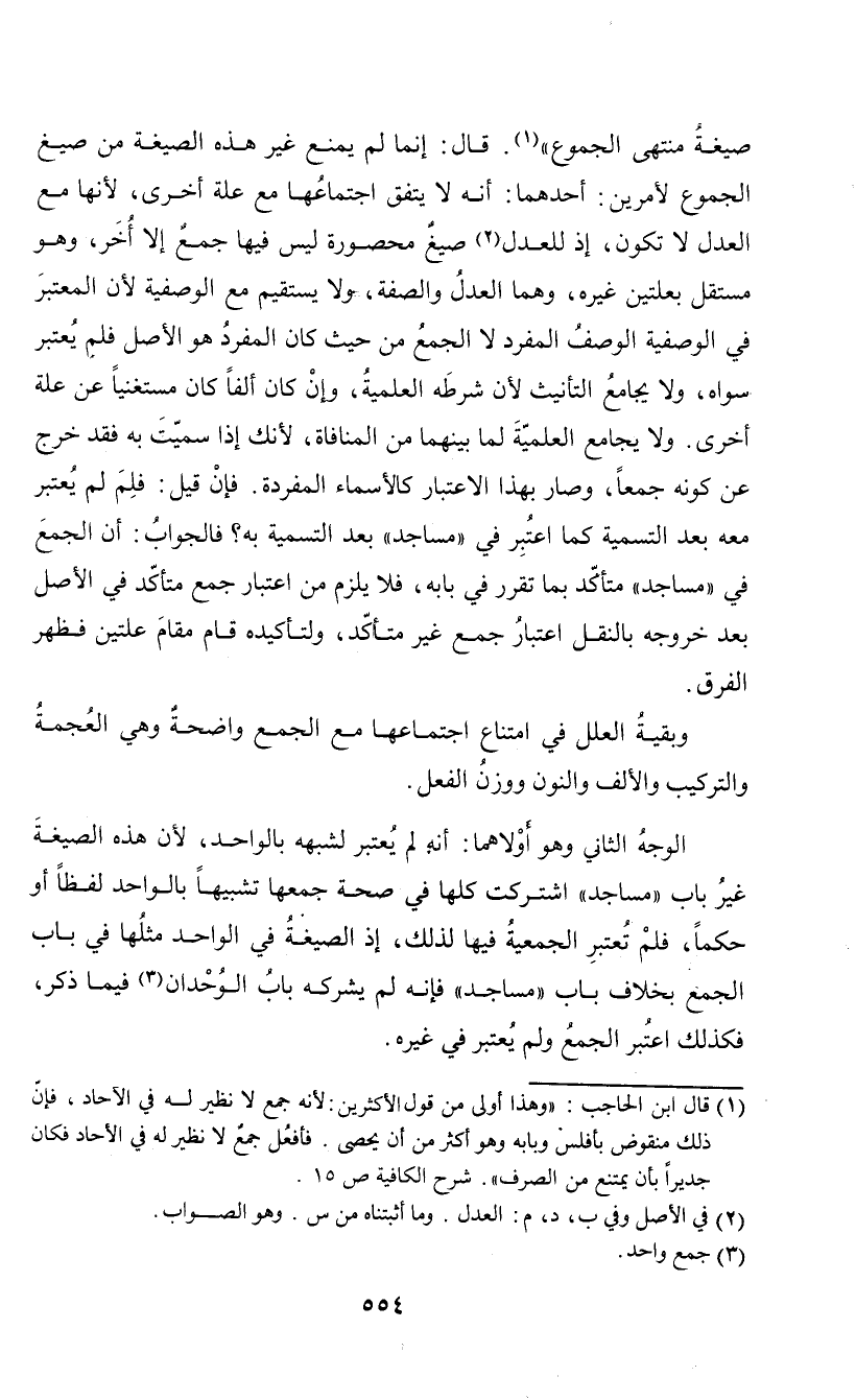 (¬1) قال ابن الحاجب: "وهذا أولى من قول الأكثرين: لأنه جمع لا نظير له في الآحاد، فإن ذلك منقوض بأفلس وبابه وهو أكثر من أن يحصى. فأفعل جمع لا نظير له في الأحاد فكان جديراً بأن يمتنع من الصرفط. شرح الكافية ص 15.