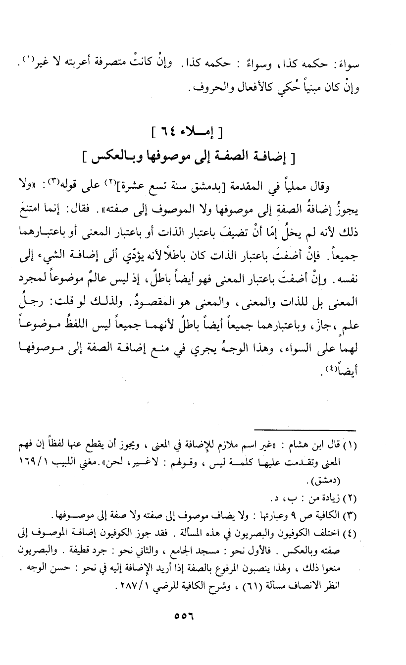 (¬3) الكافية ص 9 وعبارتها: ولا يضاف موصوف إلى صفته ولا صفة إلى موصوفها.