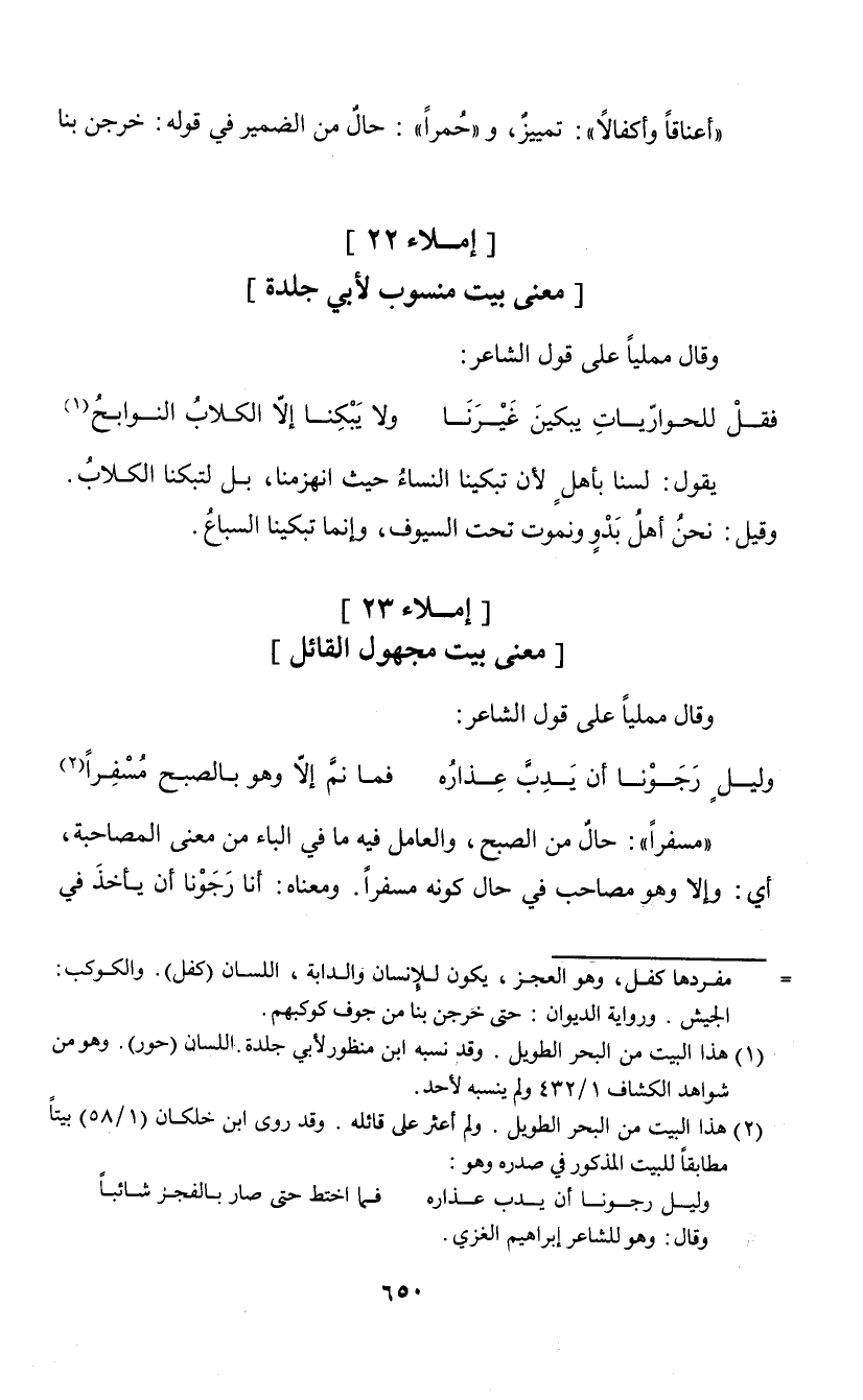 وقال ممليا على قول الشاعر: