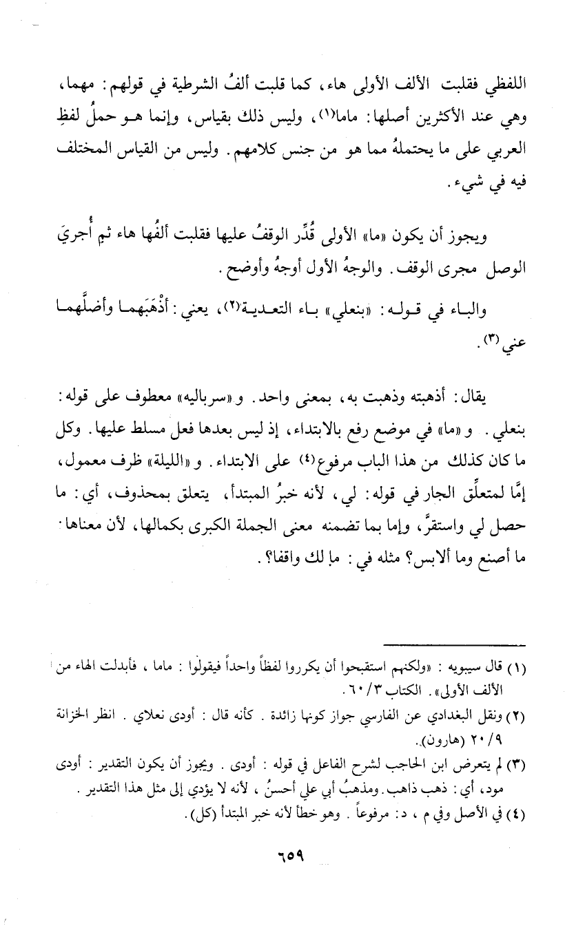 (¬1) قال سيبويه: " ولكنهم استقبحوا أن يكرروا لفظا واحدا فيقولوا: ماما، فأبدلت الهاء من الألف الأولى". الكتاب 3/ 60.