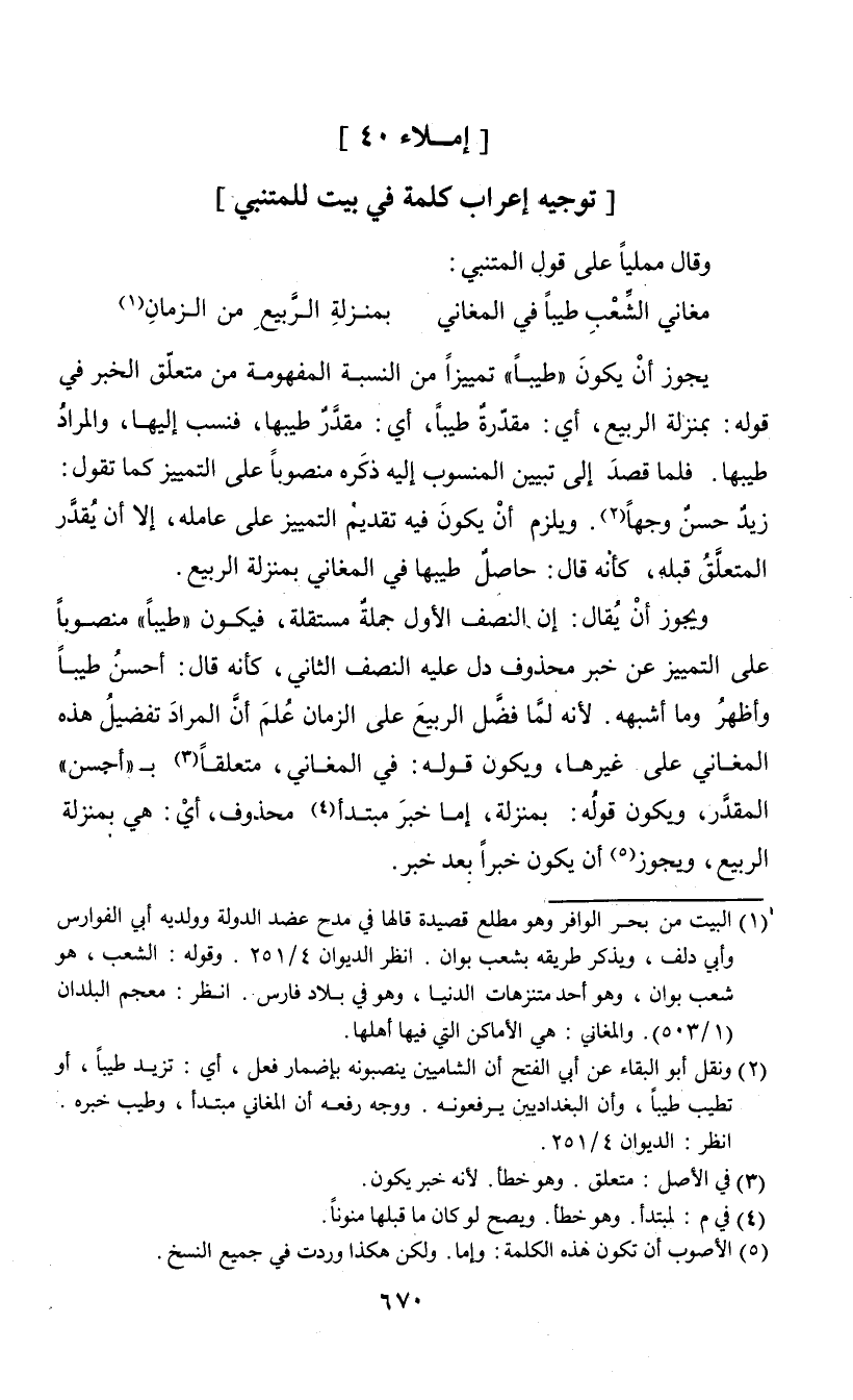 قال ممليا على قول المتنبي: