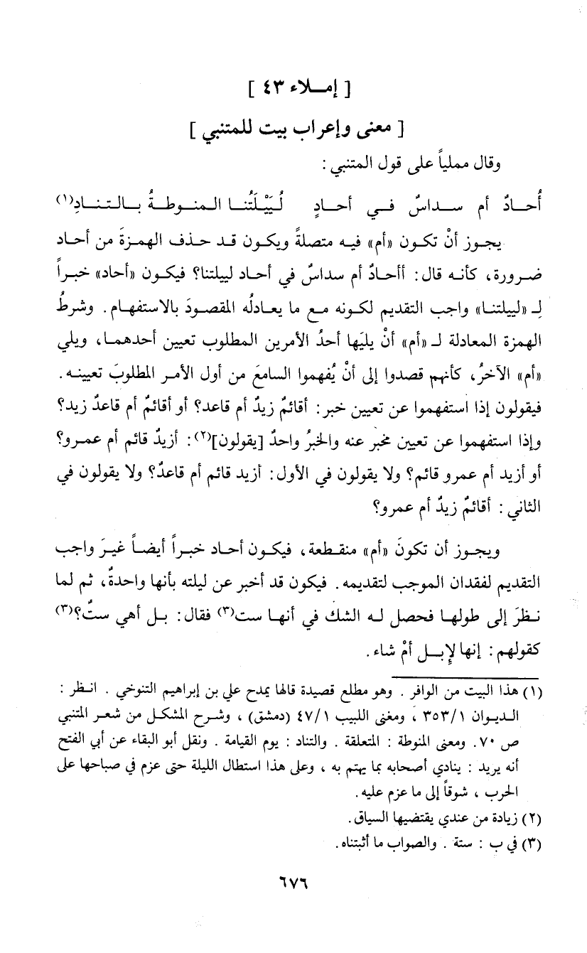 وقال ممليا على قول المتنبي: