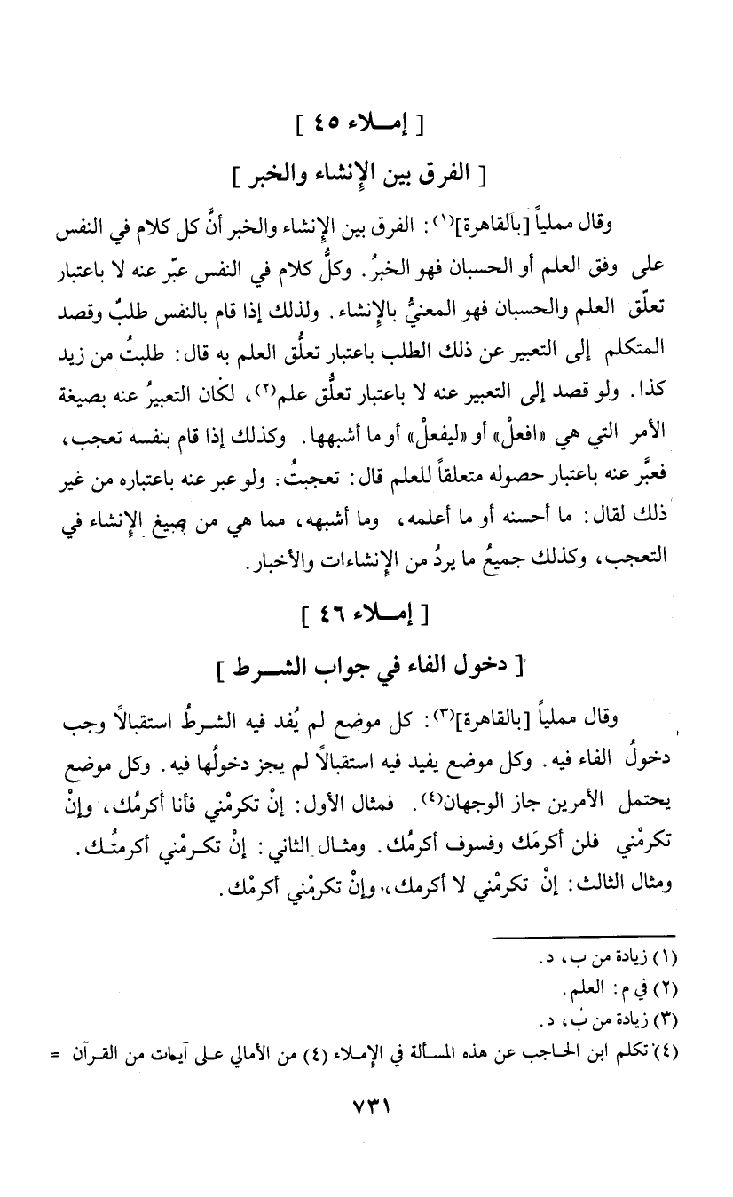 (¬4) تكلم ابن الحاجب عن هذه المسألة في الإملاء (4) من الأمالي على آيات من القرآن الكريم، ص:114، وفي الإيضاح 2/ 248، وفي شرح الكافية ص 37.