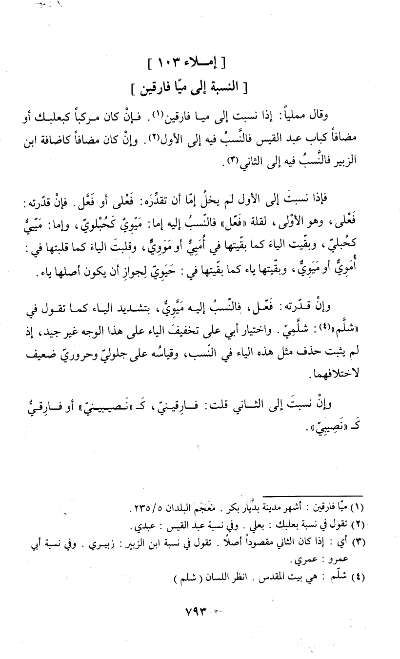 (¬2) تقول في نسبة بعلبك: بعلي. وفي نسبة عبد القيس: عبدي.