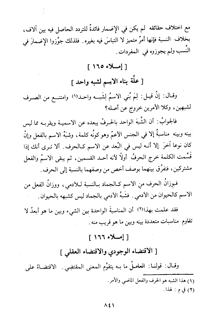 (¬1) هذا الشبه هو الحرف والفعل الماضي والأمر.