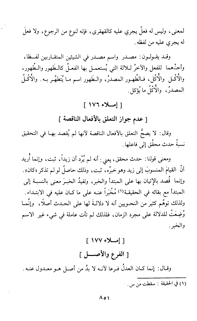 وقال: لا يصح التعلق بالأفعال الناقصة لأنها لم يقصد بها في التحقيق نسبة حدث محقق إلى فاعلها. ومعنى قولنا: حدث محقق، يعني: أنه لم يرد أن زيدا، ثبت، وإنما أريد أن القيام المنسوب إلى زيد وهو خبره، ثبت، وذلك حاصل لو لم تذكر "كان". وإنما قصد بالإتيان بها على المبتدأ والخبر، وتفيد الخبر معنى بالنسبة إلى المبتدأ مع بقائه في الحقيقة (¬1) مخبرا عنه على ما كان عليه في الابتداء. ولذلك توهم كثير من النحويين أنه لا دلالة لها على الحدث أصلا، وإنما وضعت للدلالة على مجرد الزمان، فلذلك لم تأت عاملة في شيء غير الاسم والخبر.