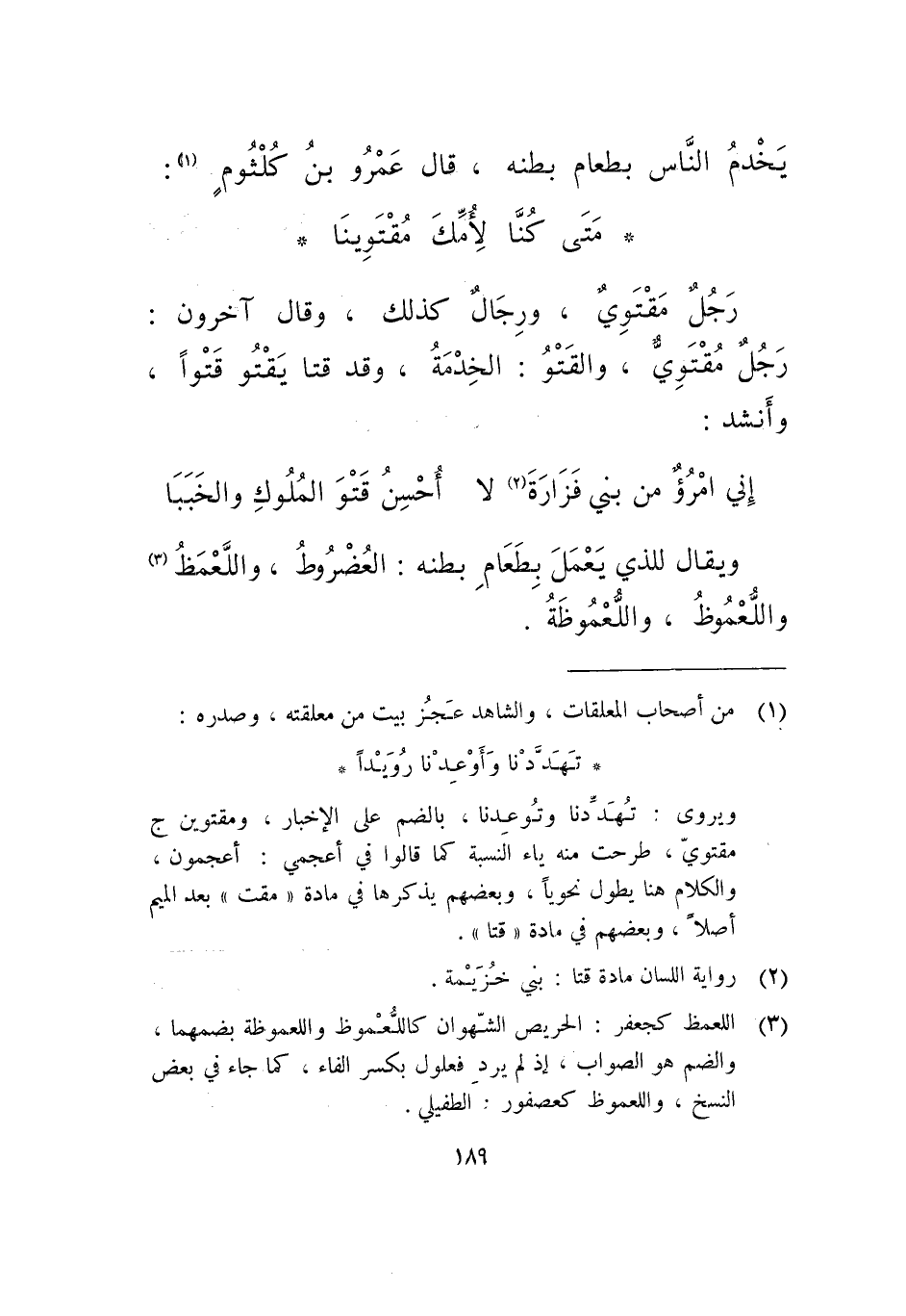 يخدم الناس بطعام بطنه، قال عمرو بن كلثوم