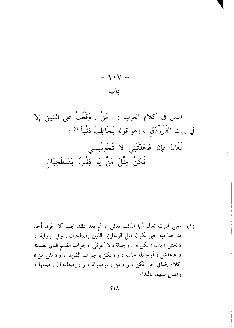 ليس في كلام العرب: (مَنْ) وقعت على اثنين إلا في بيت الفرزدق، وهو قوله يخاطب ئبًا:
