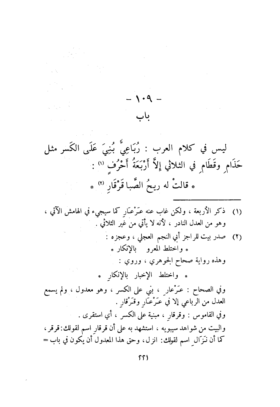 ليس في كلام العرب: رباعي بني على الكسر مثل حذام وقطام في الثلاثي إلا أربعة أحرف: