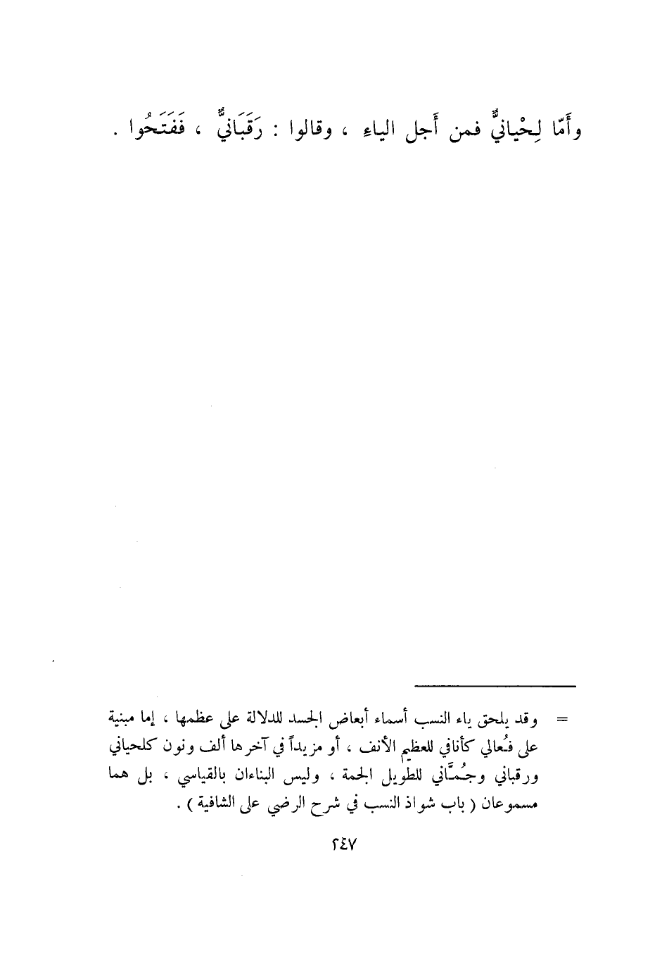 وأما لحياني فمن أجل الياء، وقالوا: رقباني، ففتحوا.