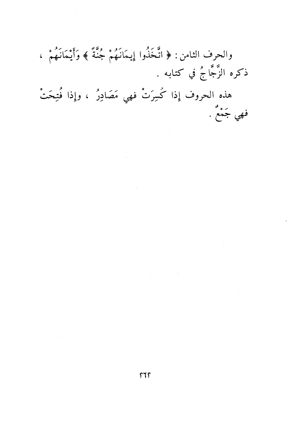 والحرف الثامن: (اتخذوا إيمانهم جنة) وأيمانهم، ذكره الزجاج في كتابه.