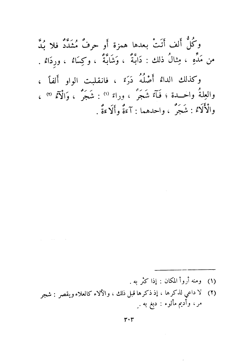 وكذلك الداء أصله دوء، فانقلبت الواو ألفا، والعلة واحدة، فاء شجر، وراء: شجر، والآء، والألاء: شجر، واحدهما: آءة وألاءة.