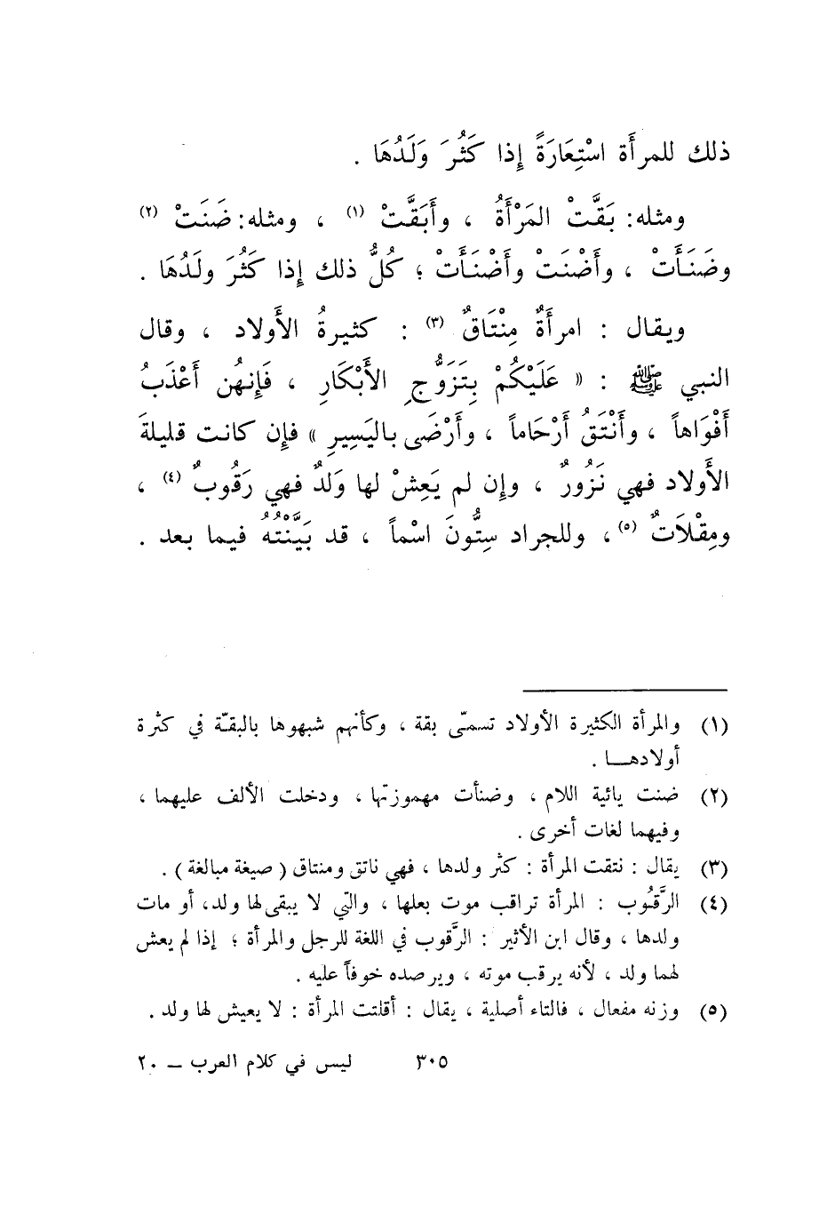 ويقال: امرأة منتاق: كثيرة الأولاد، وقال النبي صلى الله عليه وسلم: عليكم بتزوج الأبكار، فإنهن أعذب أفواها، وأنتق أرحاما، وأرضى باليسير. فإن كانت قليلة الأولاد فهي نزور، وإن لم يعش لها ولد فهي رقوب، ومقلات وللجراد ستون اسما، قد بينته فيما بعد.