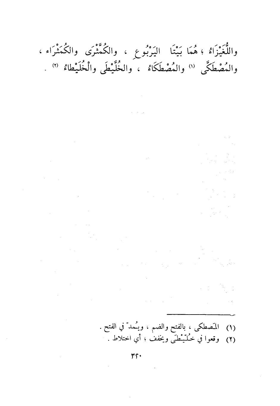 واللغيزاء، هما بيتا اليربوع، والكمثرى والكمثراء، والمصطكى والمصطكاء، والخليطى والخليطاء.