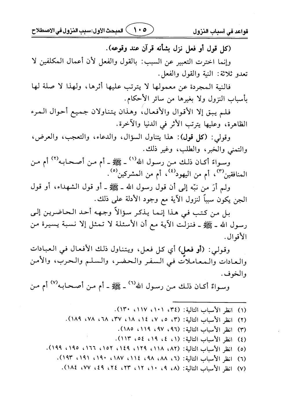 ولم أرَ من نبّه إلى أن قول رسول اللَّه - صَلَّى اللَّهُ عَلَيْهِ وَسَلَّمَ - أو قول الشهداء، أو قول الجن يكون سبباً لنزول الآية مع وجود الأدلة على ذلك.