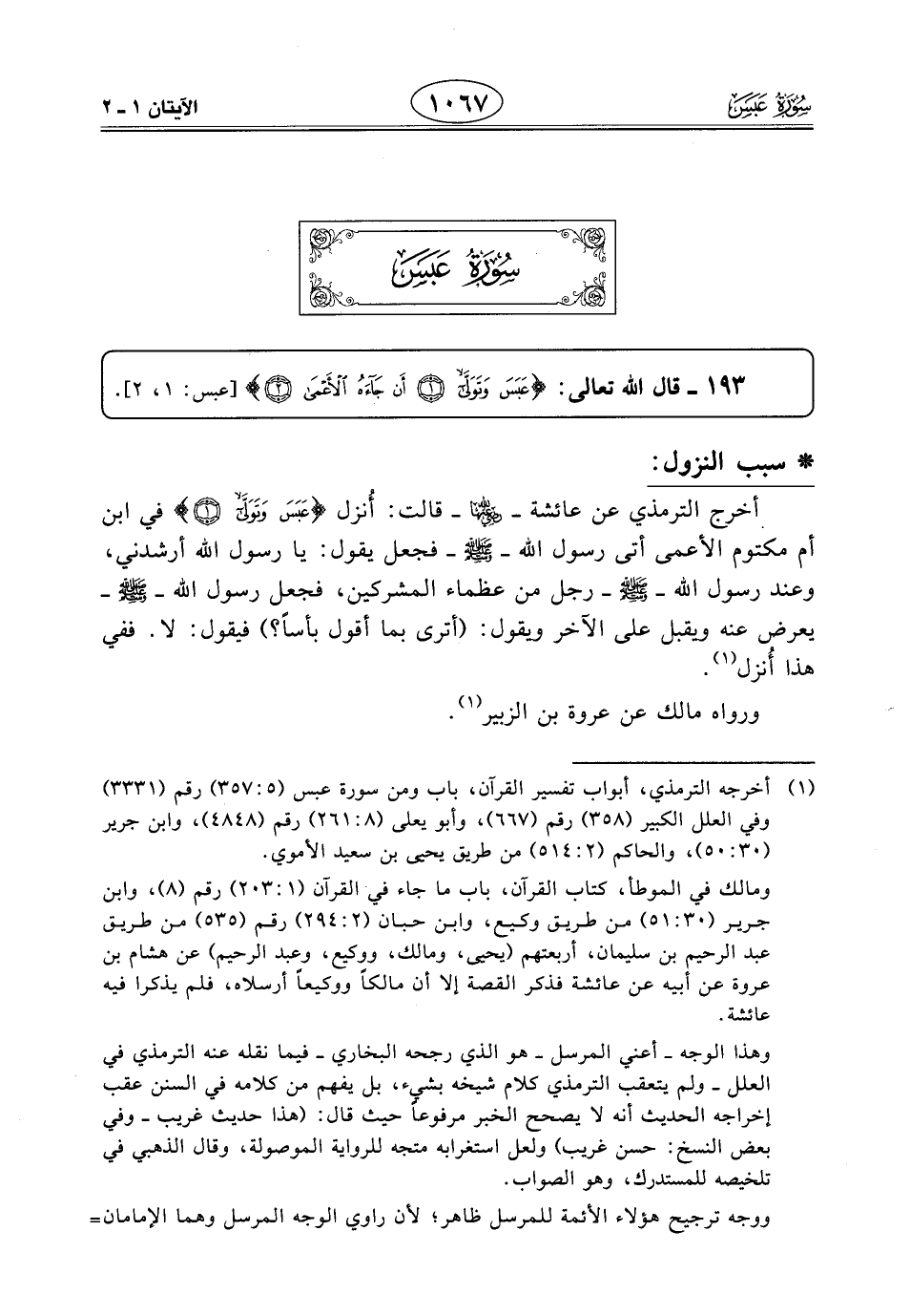 193 - قال الله تعالى: (عَبَسَ وَتَوَلَّى (1) أَنْ جَاءَهُ الْأَعْمَى (2)