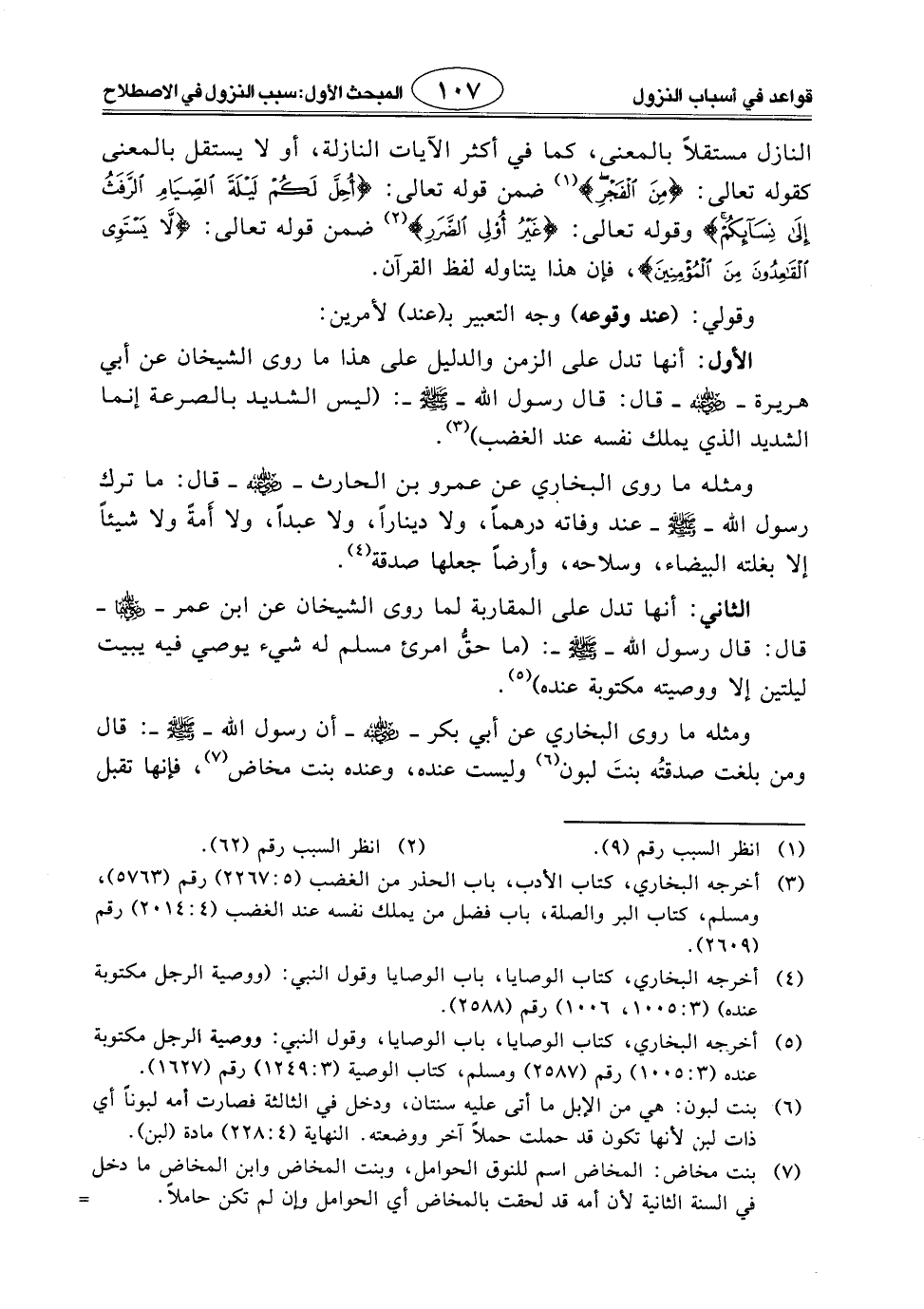 وقولي: (عند وقوعه) وجه التعبير ب (عند) لأمرين:
