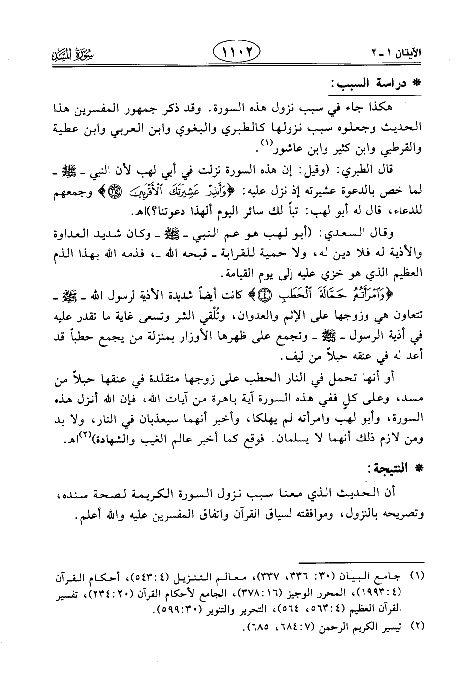 أن الحديث الذي معنا سبب نزول السورة الكريمة لصحة سنده، وتصريحه بالنزول، وموافقته لسياق القرآن واتفاق المفسرين عليه والله أعلم.