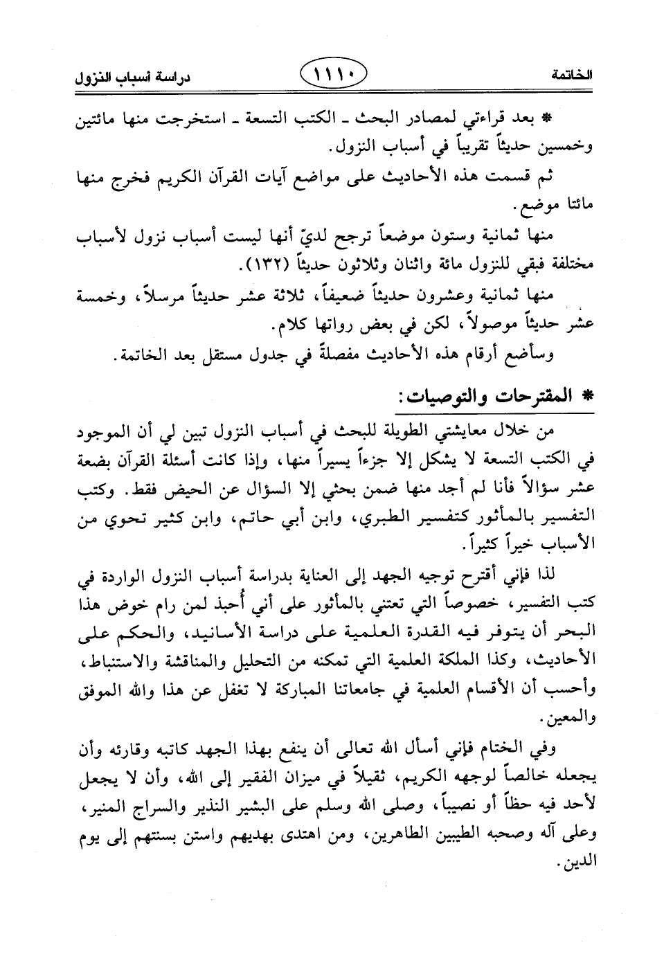 لذا فإني أقترح توجيه الجهد إلى العناية بدراسة أسباب النزول الواردة في كتب التفسير، خصوصًا التي تعتني بالمأثور على أني أحبذ لمن رام خوض هذا البحر أن يتوفر فيه القدرة العلمية على دراسة الأسانيد، والحكم على الأحاديث، وكذا الملكة العلمية التي تمكنه من التحليل والمناقشة والاستنباط، وأحسب أن الأقسام العلمية في جامعاتنا المباركة لا تغفل عن هذا والله الموفق والمعين.